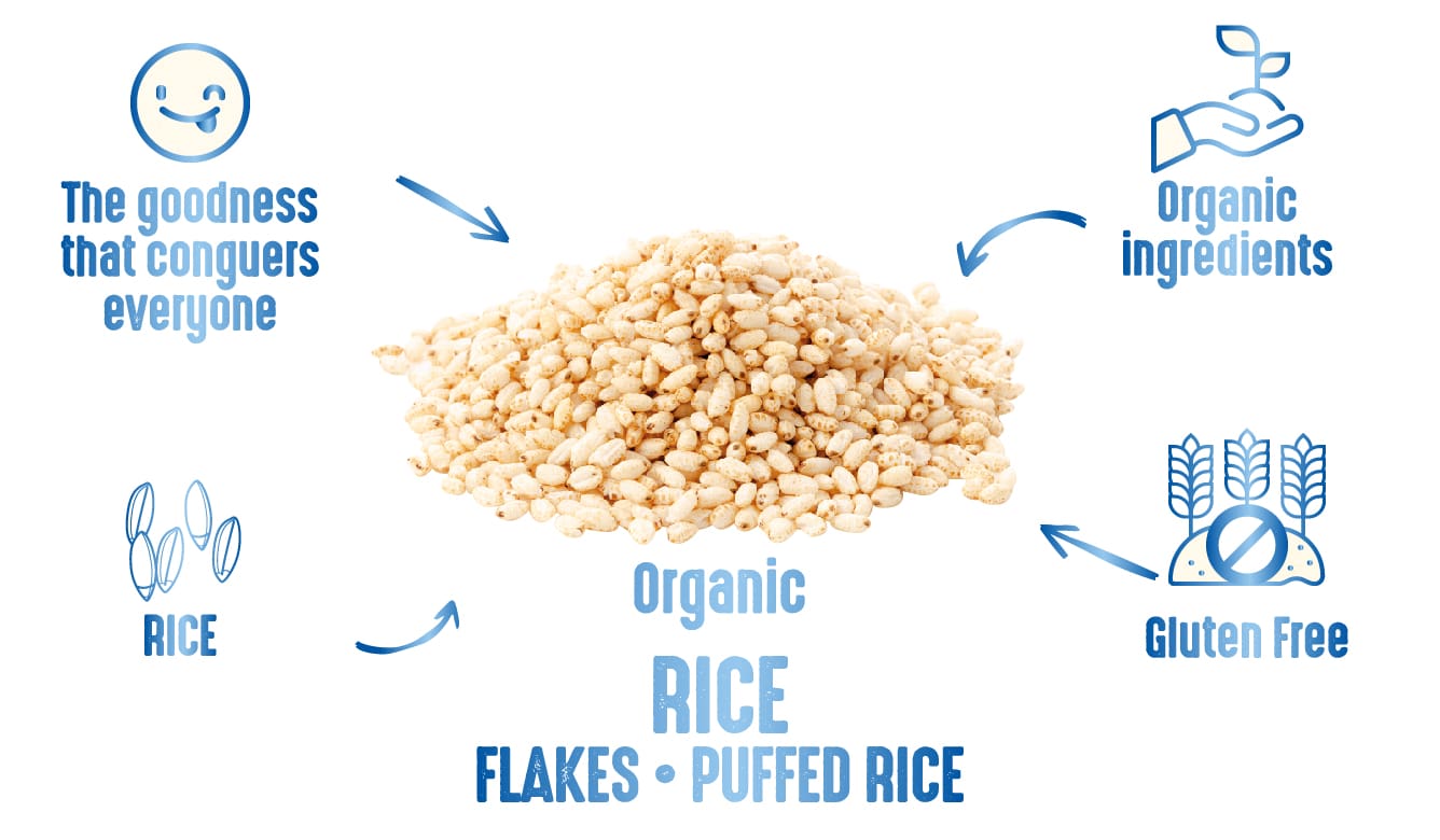 Puffed rice is a special ingredient, to be enhanced beyond the classic breakfast immersed in milk. This product lends itself to being enriched with fruit, chocolate or other cereal flakes.